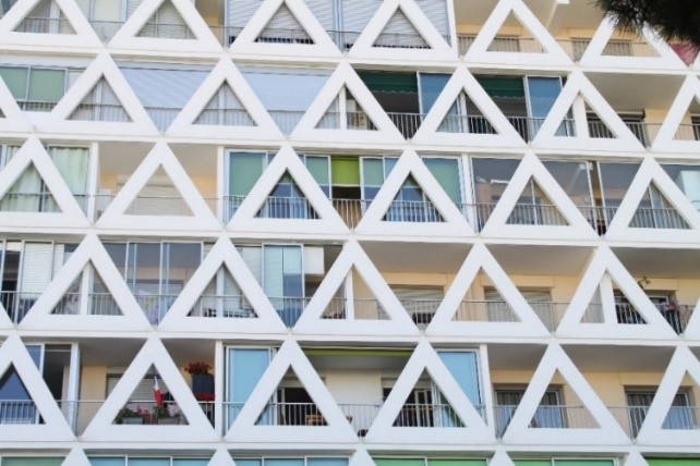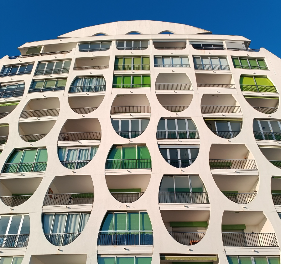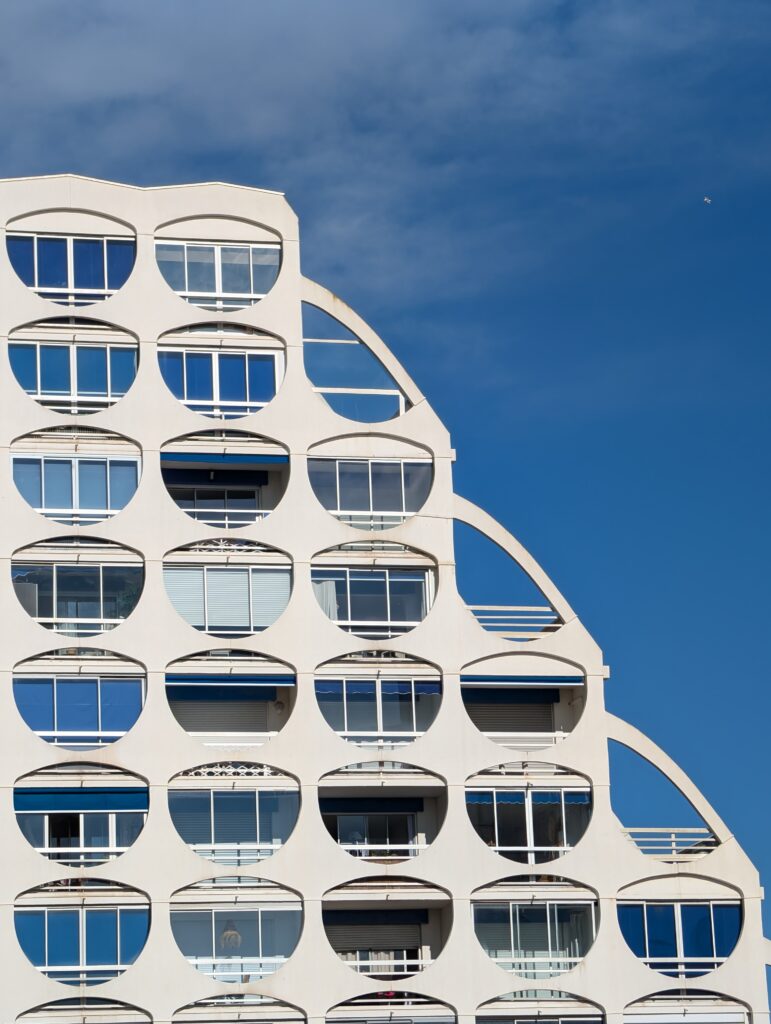 Au Centre-ville, peu après les Incas, un bâtiment attire rapidement notre attention. Les Voiles Blanches, dont la façade est constituée de petites modénatures triangulaires blanches. Il n’y a pas de symbolique derrière ce choix de design, mais on peut laisser son imagination faire le reste. Un sablier ? De multiples formes peuvent être créées à partir des triangles équilatéraux.
