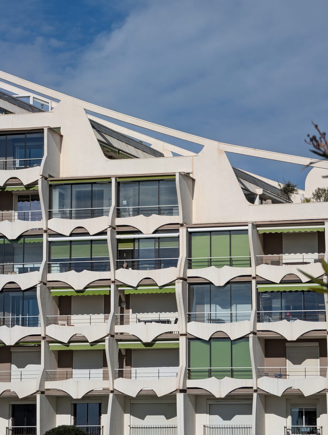 Notre balade se poursuit au Couchant, avec une rencontre avec le bâtiment emblématique « Le Poséidon ». Réalisé par Jean Balladur et son fils Gilles, il règne sur le Couchant.